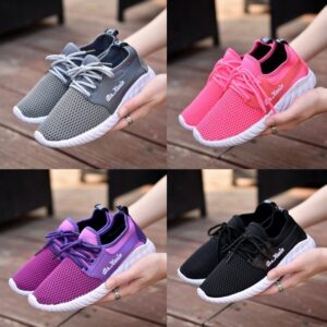 Casual Lace-up Mesh Sneakers Breathable Flying Woven Round Toe Walking Running Sports Shoes