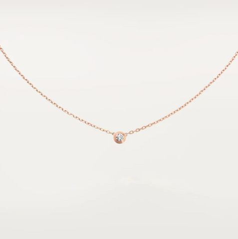 As an embellishment of a small diamond necklace like this, you don’t have to pay too much attention to its carat number and size when choosing it. Just one diamond is enough to be eye-catching.