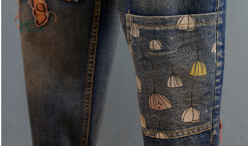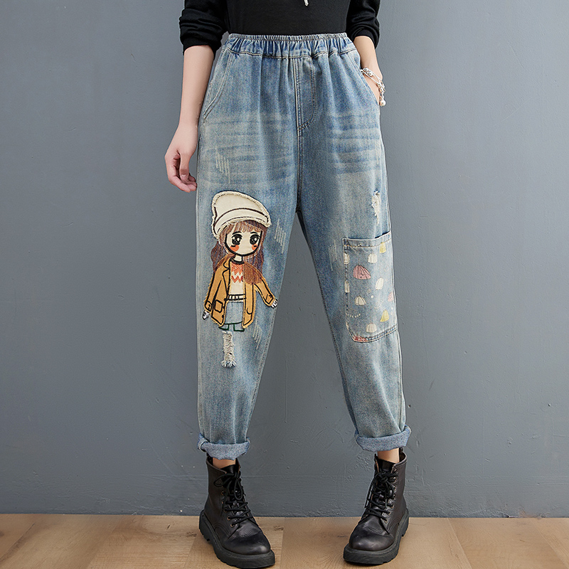 Cartoon Stickers Embroidered Jeans For Women
